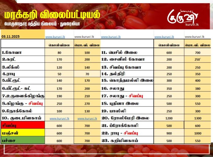 Homeஉள்நாடு உள்நாடுசெய்திவணிகம் மரக்கறி விலைப்பட்டியல் (03.11.2025) November 3, 2025 மரக்கறி விலைப்பட்டியல் (03.11.2025)நுவரெலியா பொருளாதார மத்திய நிலையத்தால் இன்று (03) வெளியிடப்பட்டுள்ள மரக்கறி வகைகளின் (ஒரு கிலோ) விலை பட்டியல்… Share FacebookTwitterPinterestWhatsAppTelegramViber அநுர குமாரவின் கட்சியில் குடும்ப உறுப்பினர்கள் இல்லையா?58:18 தேயிலை தொழிற்சாலைக்குள் அதிரடியாக புகுந்த அமைச்சர் ஜீவன்!02:50 ரூ. 1,700 இல்லையேல் தக்க பாடம் புகட்டுவோம்! தோட்ட தொழிலாளர்கள் கொந்தளிப்பு03:37 வெடுக்குநாறி மலை சிவராத்திரி பூஜையை, இனவாதம் ரீதியில் விமர்சித்த விமல்!04:13 தொல்பொருள் திணைக்கள அதிகாரிகளின் அடாவடி! வவுனியாவில் அட்டகாசம்! வெளுத்து வாங்கிய சாணக்கியன்07:58 மதச் சுதந்திரம் வடக்கிற்கும் தெற்கிற்கும் சமமாக இருக்க வேண்டும்! வெடுக்குநாறி மலைச் சம்பவம்.!07:54 இப்படி ஒரு பண்டிகை இலங்கையில இருக்கா🤭😳😲#news #srilanka #vairalvideo #vairal #malaiyagakuruvi #lka02:55 மலையக மக்கள் இன்னும் ஏமார்ந்து கொண்டிருக்கின்றனர். I தேசிய மக்கள் சக்தியின் தெனியா மாநாடு I NPP11:43 இலங்கை வந்த இளவரசிக்கு ஜனாதிபதி மாளிகையில் வரவேற்பு02:16 நான் மருத்துவராக வேண்டும்! ஊடகங்களிடம் மனம் திறந்த கில்மிசா..03:39 Related Articles உள்நாடு செம்மணி புதைகுழிக்குள் வெள்ளம்! அடுத்த வருடமே 3 ஆம் கட்ட அகழ்வுப் பணி உள்நாடு யாழில் போதை மாத்திரைகளை விற்ற இருவர் கைது! உள்நாடு வழக்கை முடித்து உதவி ஆசிரியர்களுக்கு நியமனம் வழங்க நடவடிக்கை எடுங்கள்: பிரதமருக்குகணபதி கனகராஜ் கடிதம் Latest Articles உள்நாடு செம்மணி புதைகுழிக்குள் வெள்ளம்! அடுத்த வருடமே 3 ஆம் கட்ட அகழ்வுப் பணி உள்நாடு யாழில் போதை மாத்திரைகளை விற்ற இருவர் கைது! உள்நாடு வழக்கை முடித்து உதவி ஆசிரியர்களுக்கு நியமனம் வழங்க நடவடிக்கை எடுங்கள்: பிரதமருக்குகணபதி கனகராஜ் கடிதம் உள்நாடு பட்ஜட், தேர்தல் குறித்து ஆராய கூடுகிறது தமிழரசுக் கட்சி! உள்நாடு சட்டவிரோதமாக மாணிக்கக்கல் அகழ்வில் ஈடுபட்ட இருவர் மஸ்கெலியா பொலிஸாரால் கைது! Load more