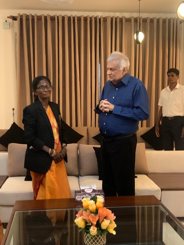 பிலிப்பைன்ஸில் நடைபெற்ற 22-ஆவது ‘மூத்தோருக்கான ஆசிய தடகள சாம்பியன்ஷிப்’ போட்டியில் கலந்துகொண்டு தங்கப்பதக்கம் வென்ற அகிலத் திருநாயகியை ஜனாதிபதி ரணில் விக்கிரமசிங்க, நேரில் அழைத்து பாராட்டி – கௌரவித்து – மதிப்பளித்தார்.