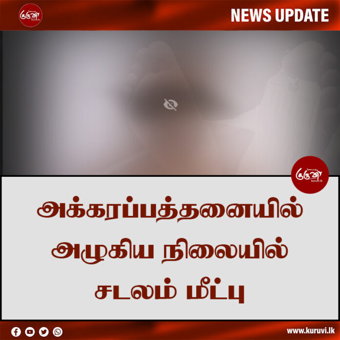 இதன்போது மீட்கப்பட்ட சடலம் அடையாளம் காண முடியாதவாறு அழுகிய நிலையில் காணப்பட்டதாக பொலிஸார் தெரிவித்துள்ளனர்.