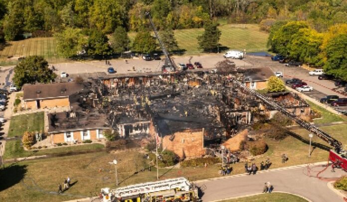 அங்கு பலர் கூடியிருந்தபோது திடீரென அங்கிருந்த ஒருவர் துப்பாக்கிச்சூடு நடத்தினார். அதை தொடர்ந்து தீ விபத்தும் ஏற்பட்டது. தகவல் அறிந்து சம்பவ இடத்திற்கு பொலிஸார் விரைந்தனர். இந்த சம்பவத்தில் 4 பேர் உயிரிழந்தனர்.