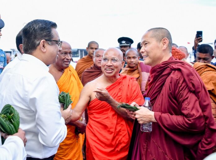 அமைதிக்கான நடைப்பயணத்தின் நிறைவைக் குறிக்கும் வகையில், கொண்டவரப்பட்ட ஸ்ரீ மகா போதியின் கன்று. ஜனாதிபதி அநுர குமார திசாநாயக்கவினால், இராஜதந்திர ரீதியாக அமெரிக்காவிலிருந்து வருகை தந்துள்ள மகா சங்கத்தினரிடம் கையளிப்படவுள்ளது.
