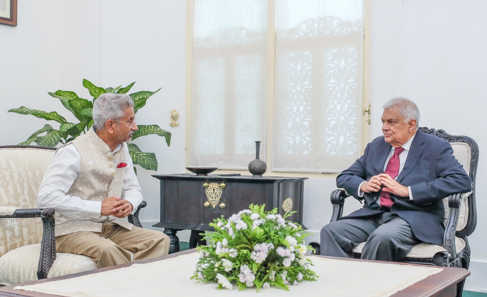 இந்திய வௌிவிகார அமைச்சர் கலாநிதி. ஜெய்சங்கர் மற்றும் ஜனாதிபதி ரணில் விக்ரமசிங்க ஆகியோருக்கிடையிலான சந்திப்பு இன்று (20) ஜனாதிபதி மாளிகையில் இடம்பெற்றது.