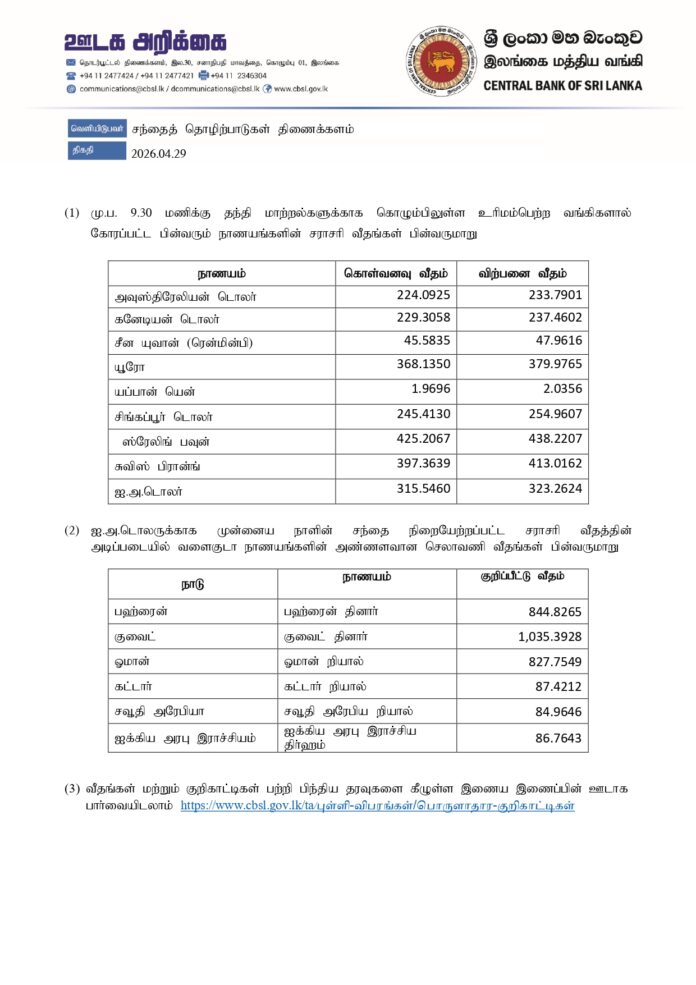 Homeஉள்நாடு உள்நாடுசெய்திவணிகம் இன்றைய (29.04.2026) நாணய மாற்று விகிதம் April 29, 2026 Share FacebookTwitterPinterestWhatsAppTelegramViber தேயிலை தொழிற்சாலைக்குள் அதிரடியாக புகுந்த அமைச்சர் ஜீவன்!02:50 ரூ. 1,700 இல்லையேல் தக்க பாடம் புகட்டுவோம்! தோட்ட தொழிலாளர்கள் கொந்தளிப்பு03:37 வெடுக்குநாறி மலை சிவராத்திரி பூஜையை, இனவாதம் ரீதியில் விமர்சித்த விமல்!04:13 தொல்பொருள் திணைக்கள அதிகாரிகளின் அடாவடி! வவுனியாவில் அட்டகாசம்! வெளுத்து வாங்கிய சாணக்கியன்07:58 மதச் சுதந்திரம் வடக்கிற்கும் தெற்கிற்கும் சமமாக இருக்க வேண்டும்! வெடுக்குநாறி மலைச் சம்பவம்.!07:54 இப்படி ஒரு பண்டிகை இலங்கையில இருக்கா🤭😳😲#news #srilanka #vairalvideo #vairal #malaiyagakuruvi #lka02:55 மலையக மக்கள் இன்னும் ஏமார்ந்து கொண்டிருக்கின்றனர். I தேசிய மக்கள் சக்தியின் தெனியா மாநாடு I NPP11:43 இலங்கை வந்த இளவரசிக்கு ஜனாதிபதி மாளிகையில் வரவேற்பு02:16 நான் மருத்துவராக வேண்டும்! ஊடகங்களிடம் மனம் திறந்த கில்மிசா..03:39 முத்து சப்பரத்தில் இசைக்குயில்....! மேளதாளத்துடன் கோலாகல வரவேற்பு..!!03:05 Related Articles உலகம் இனியும் நல்லவராக இருக்க முடியாது: ஈரானுக்கு ட்ரம்ப் எச்சரிக்கை! செய்தி “நாம் நீலகாமம்” அறவழி போராட்டத்துக்கு சிறிதரன் எம்.பி. ஆதரவு! உள்நாடு “மின்சார ரயில் சேவையை அடுத்த ஆண்டு ஆரம்பிக்கத் திட்டம்” Latest Articles உலகம் இனியும் நல்லவராக இருக்க முடியாது: ஈரானுக்கு ட்ரம்ப் எச்சரிக்கை! செய்தி “நாம் நீலகாமம்” அறவழி போராட்டத்துக்கு சிறிதரன் எம்.பி. ஆதரவு! உள்நாடு “மின்சார ரயில் சேவையை அடுத்த ஆண்டு ஆரம்பிக்கத் திட்டம்” செய்தி முதலாம் புத்தகம் (The First Book -2025)- 53 நூல்களின் வெளியீடு! உள்நாடு 21 மாவட்டங்களில் மே தின கூட்டங்களை நடத்துகிறது என்.பி.பி.: நுவரெலியா வருகிறார் ஜனாதிபதி! Load more
