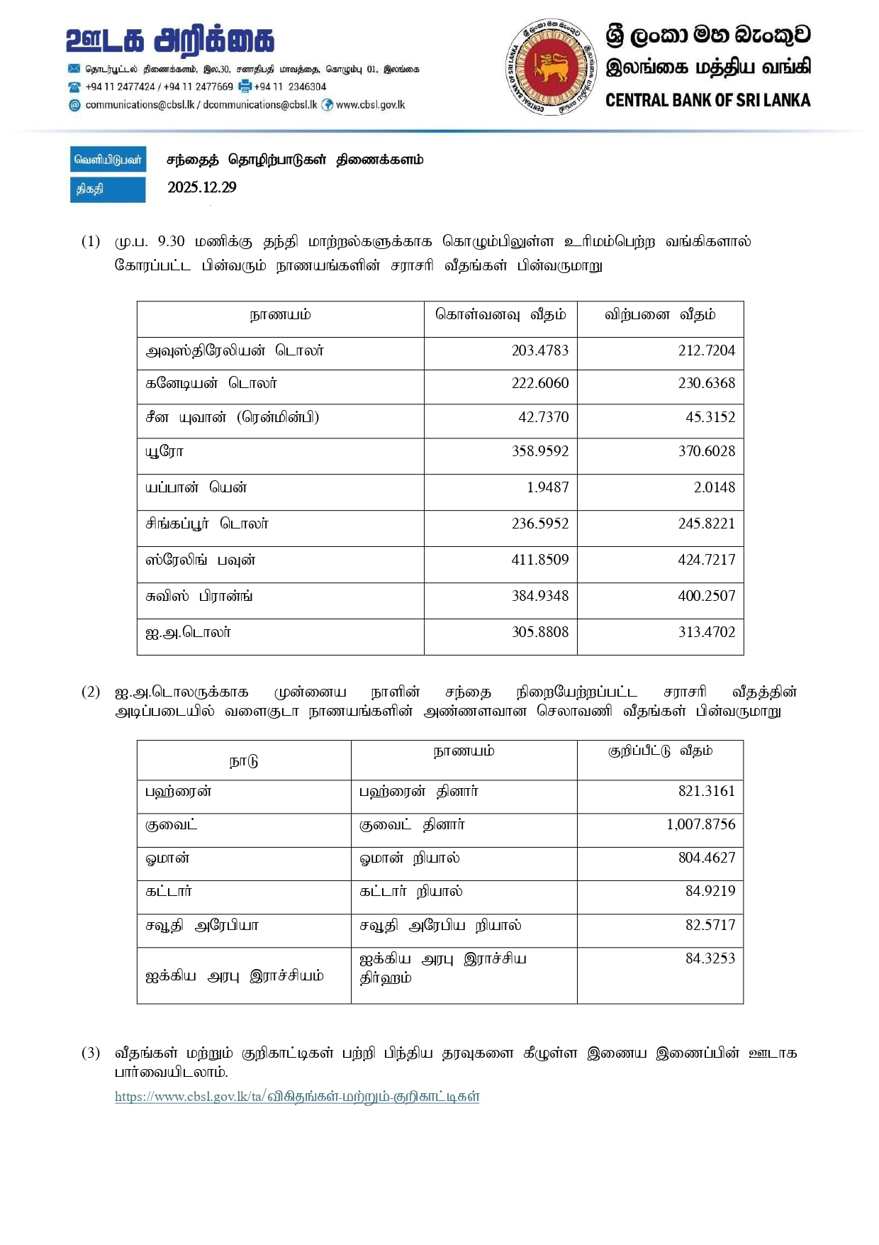 Homeஉள்நாடு உள்நாடுசெய்திவணிகம் இன்றைய (29.12.2025) நாணய மாற்று விகிதம் December 29, 2025 Share FacebookTwitterPinterestWhatsAppTelegramViber Related Articles உள்நாடு கனடிய தூதுவருடன் ஜனநாயக தமிழ் தேசிய கூட்டணி சந்திப்பு: தமிழர் பிரச்சினைகள் குறித்து ஆராய்வு! உள்நாடு இந்தியாவின் ஆதிக்கம் தொடருமா? 4வது டி20 போட்டி இன்று! உள்நாடு ஒருநாள் தொடரை வென்றது இங்கிலாந்து! டி-20 போட்டியில் பதிலடி கொடுக்குமா இலங்கை? Latest Articles உள்நாடு கனடிய தூதுவருடன் ஜனநாயக தமிழ் தேசிய கூட்டணி சந்திப்பு: தமிழர் பிரச்சினைகள் குறித்து ஆராய்வு! உள்நாடு இந்தியாவின் ஆதிக்கம் தொடருமா? 4வது டி20 போட்டி இன்று! உள்நாடு ஒருநாள் தொடரை வென்றது இங்கிலாந்து! டி-20 போட்டியில் பதிலடி கொடுக்குமா இலங்கை? உள்நாடு மரக்கறி விலைப்பட்டியல் (28.01.2026) உள்நாடு சுதந்திர தினம் குறித்து மலையக அரசியல் அரங்கம் விடுத்துள்ள அழைப்பு! Load more
