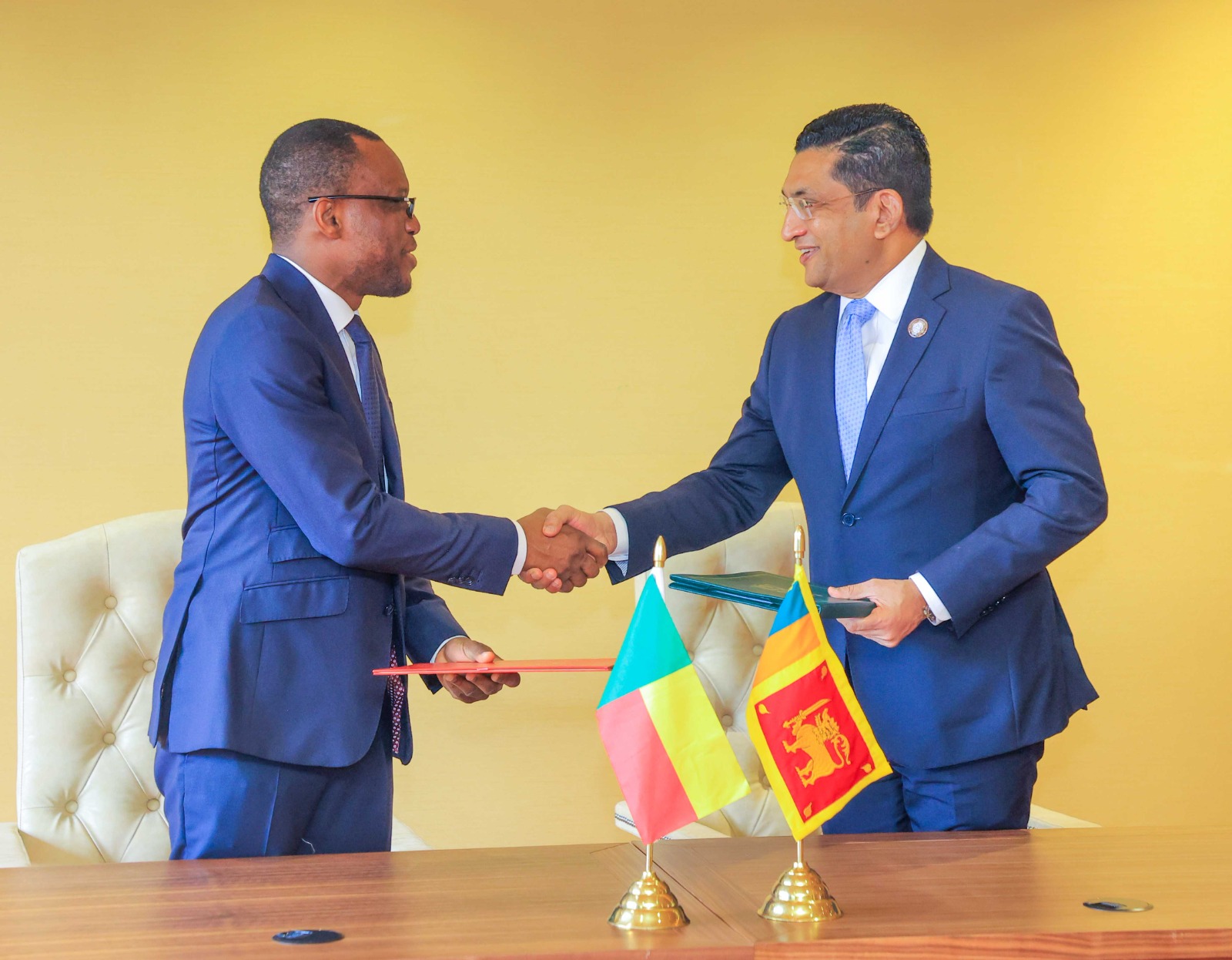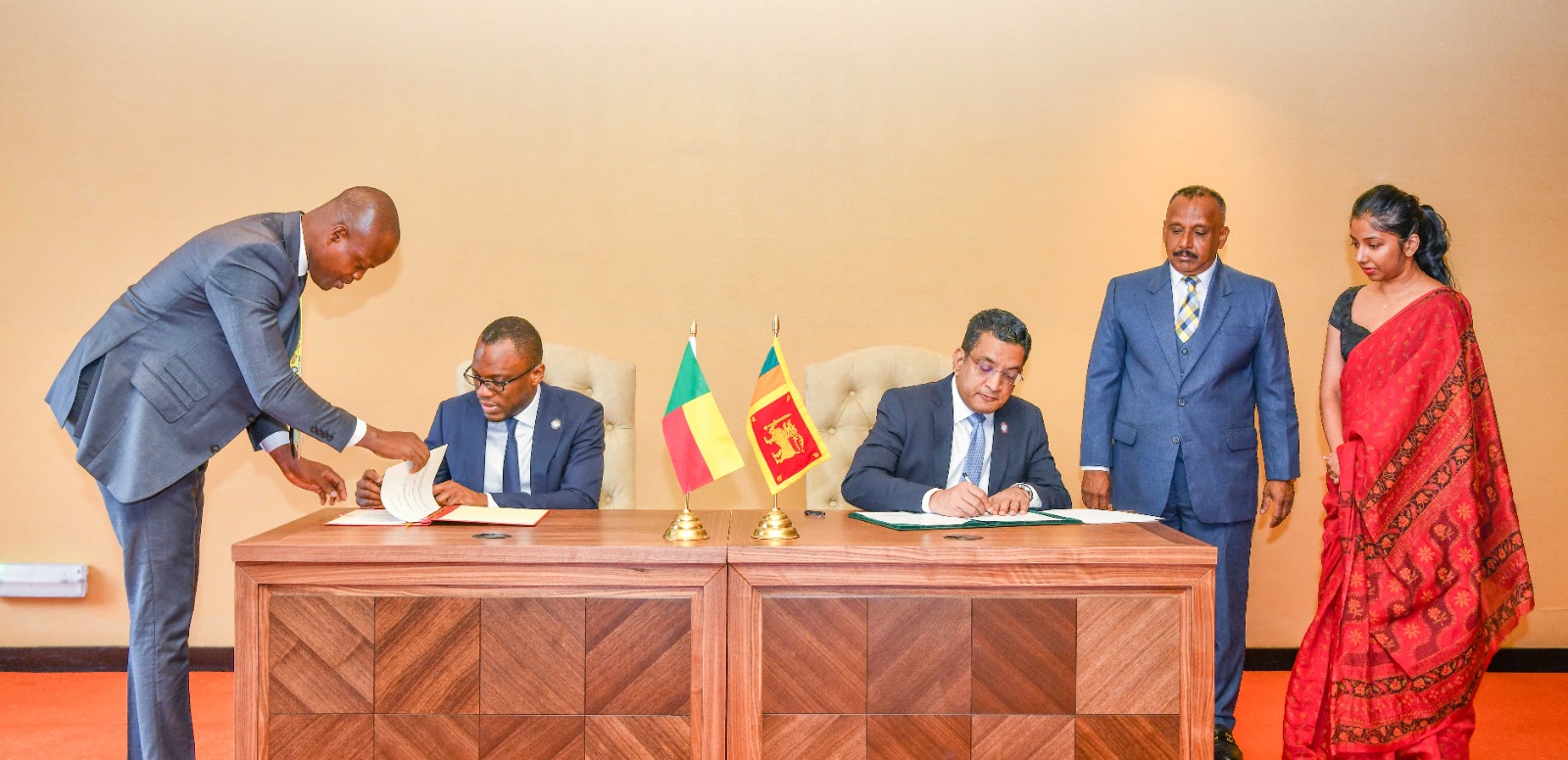 இலங்கைக்கான வெளிநாட்டலுவல்கள் அமைச்சர், ஜனாதிபதி சட்டத்தரணி அலி சப்ரி மற்றும் பெனின் குடியரசு சார்பாக அந்நாட்டு வெளிவிவகார அமைச்சர் (Olushegun Adjadi Bakari ) ஆகியோர் இந்த ஒப்பந்தத்தில் கையெழுத்திட்டனர்.