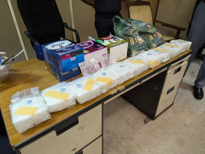 மலேசியன் எயபர்லைன்ஸுக்குச் சொந்தமான MH 179 விமானத்தில் மலேசியாவின் கோலாலம்பூர் விமான நிலையத்தில் இருந்து கட்டுநாயக்காவுக்கு வந்த குறித்த பயணியிடம் தேயிலைத் தூள் அடங்கிய பொதிகளில் 10.197 கிலோகிராம் ஐஸ் வகை போதைப்பொருள் மறைத்து வைக்கப்பட்டிருந்ததை சுங்கப் பிரிவினர் கண்டுபிடித்துள்ளனர்.