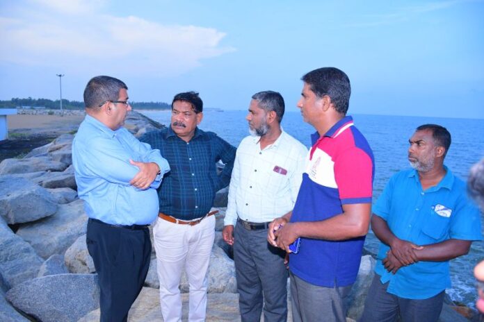 ஒலுவில் துறைமுகத்துக்கு அமைச்சர் நேற்று (26.03.2025) கண்காணிப்பு பயணம் மேற்கொண்டிருந்தார். அமைச்சருடன், அமைச்சின் செயலாளரும் உடனிருந்தார்.