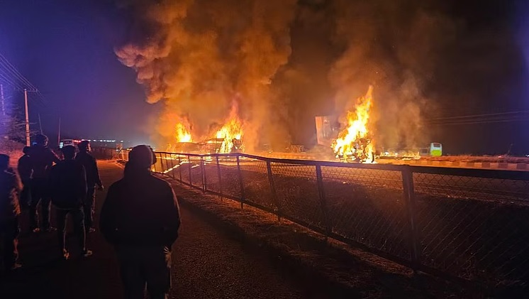 32 பயணிகளுடன் கோகர்ணாவுக்கு அந்தப் பேருந்து சென்று கொண்டிருந்தது. அப்போது எதிர்திசையில் வந்த லாரி கட்டுப்பாட்டை இழந்து, தடுப்புக் கட்டையை உடைத்துக்கொண்டு பேருந்து மீது வேகமாக வந்து மோதியது. இதையடுத்து தீ பரவியது.