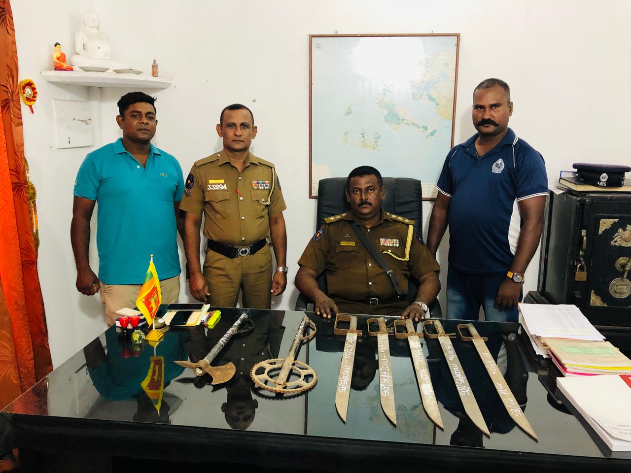 ஐந்து வாள்கள் உள்ளிட்ட ஏழு கூரிய ஆயுதங்கள் கைப்பற்றப்பட்டதுடன் சந்தேகநபர்கள் எவரும் கைது செய்யப்பட்டவில்லை.