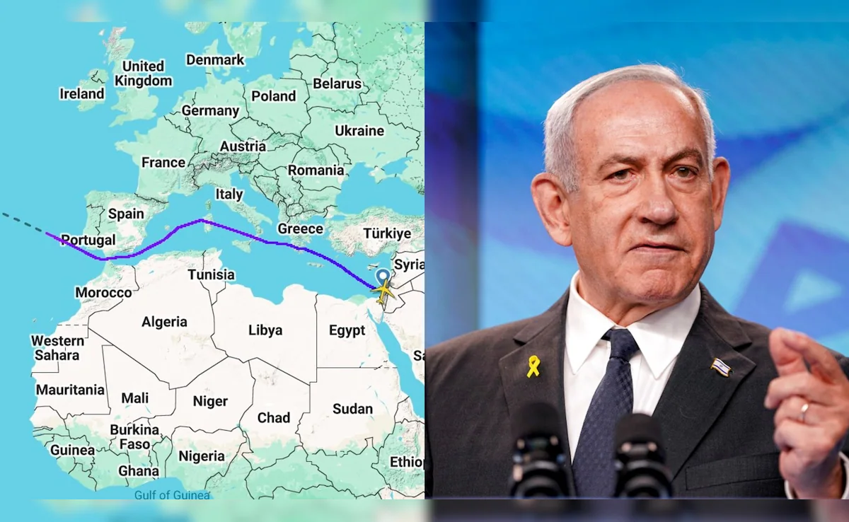அவரது விமானம், வழக்கமாக, இஸ்ரேலில் இருந்து கிரீஸ், இத்தாலி, பிரான்ஸ், ஸ்பெயின் வான்வெளி வழியாக தான் செல்லும். ஆனால் இந்த முறை, ஐநா சபைக்கு நெதன்யாகுவின் விமான பயணம் வேறு பாதையில் இருந்தது.