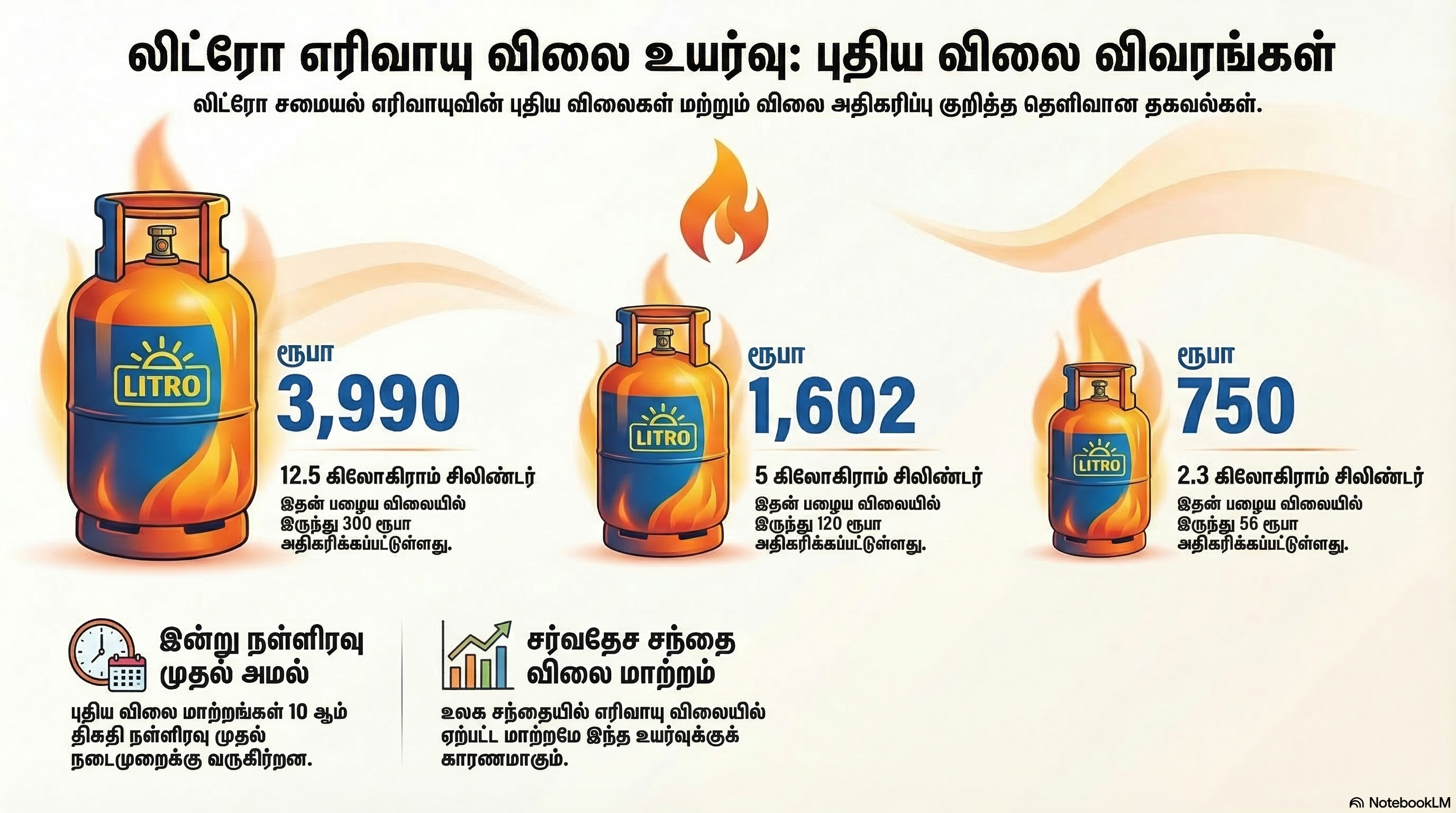 லிட்ரோ சமையல் எரிவாயு விலைகள் இன்று நள்ளிரவு முதல் அதிகரிக்கப்பட்டுள்ளன.