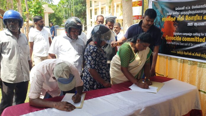 தமிழ்க் கட்சிகளின் ஏற்பாட்டில் சர்வதேச நீதி கோரிய கையெழுத்துப் போராட்டம் இன்று காலை 10 மணியளவில் யாழ். மருதனார்மடத்தில் நடைபெற்றது.