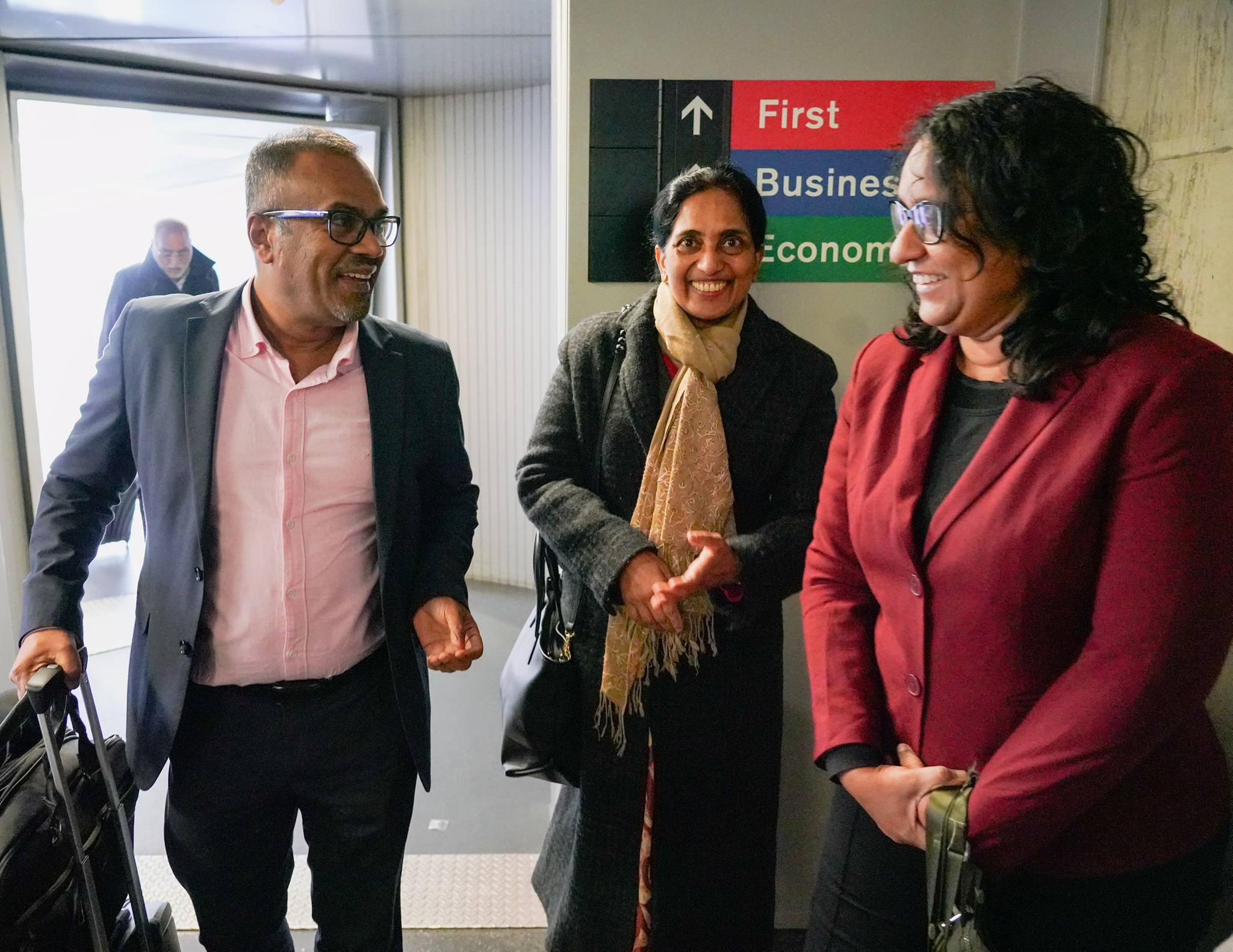 சூரிச் விமான நிலையத்தை அடைந்த அவர்களை, ஜெனீவாவில் உள்ள ஐ.நா பணியகத்துக்கான இலங்கையின் நிரந்தரப் பிரதிநிதி ஹிமாலி அருணதிலக வரவேற்றார்.