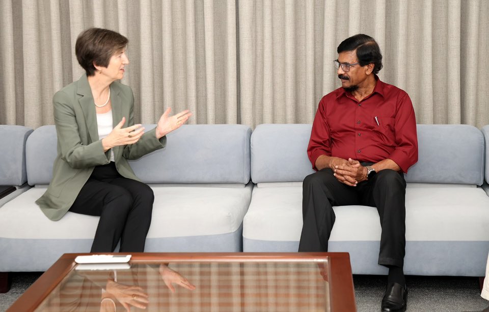 ஜேவிபி பொதுச்செயலர் ரில்வின் சில்வாவை இலங்கைக்கான சுவிட்சர்லாந்து தூதுவர் சிறி வோல்ட் சந்தித்துப் பேசியுள்ளார்.