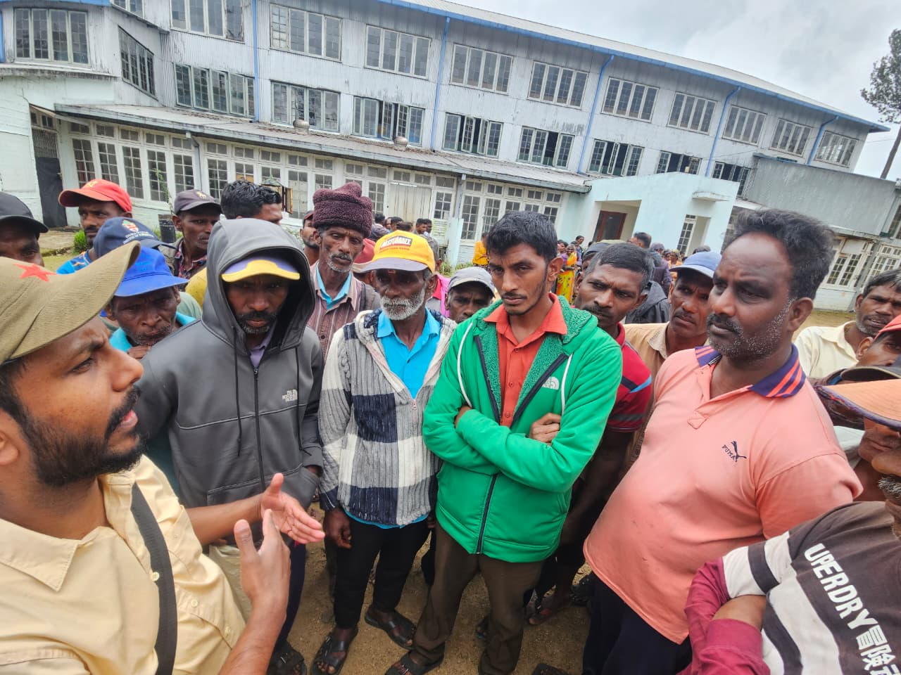 இன்று தோட்ட முகாமையாளருடன் நடைபெற்ற கலந்துரையாடலில், அகில இலங்கை தோட்ட தொழிலாளர் சங்க பிரதிநிதிகள், தொழிற்சங்க பிரதிநிதிகள் மற்றும் மக்கள் பிரதிநிதிகள் பங்கேற்று தொழிலாளர்களின் நியாயமான கோரிக்கைக்கு ஆதரவாக வலியுறுத்தினர்.