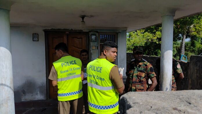 வீட்டில் இருந்த கேஸ் சிலிண்டர்கள் வெளியே தூக்கி வீசப்பட்டுள்ள தீயில் எரிந்துள்ளது. அத்துடன் வீட்டின் வாசலிலே சமையலுக்கு பயன்படுத்தப்படும் மிளகாய் தூள் வீசப்பட்டுள்ளது.