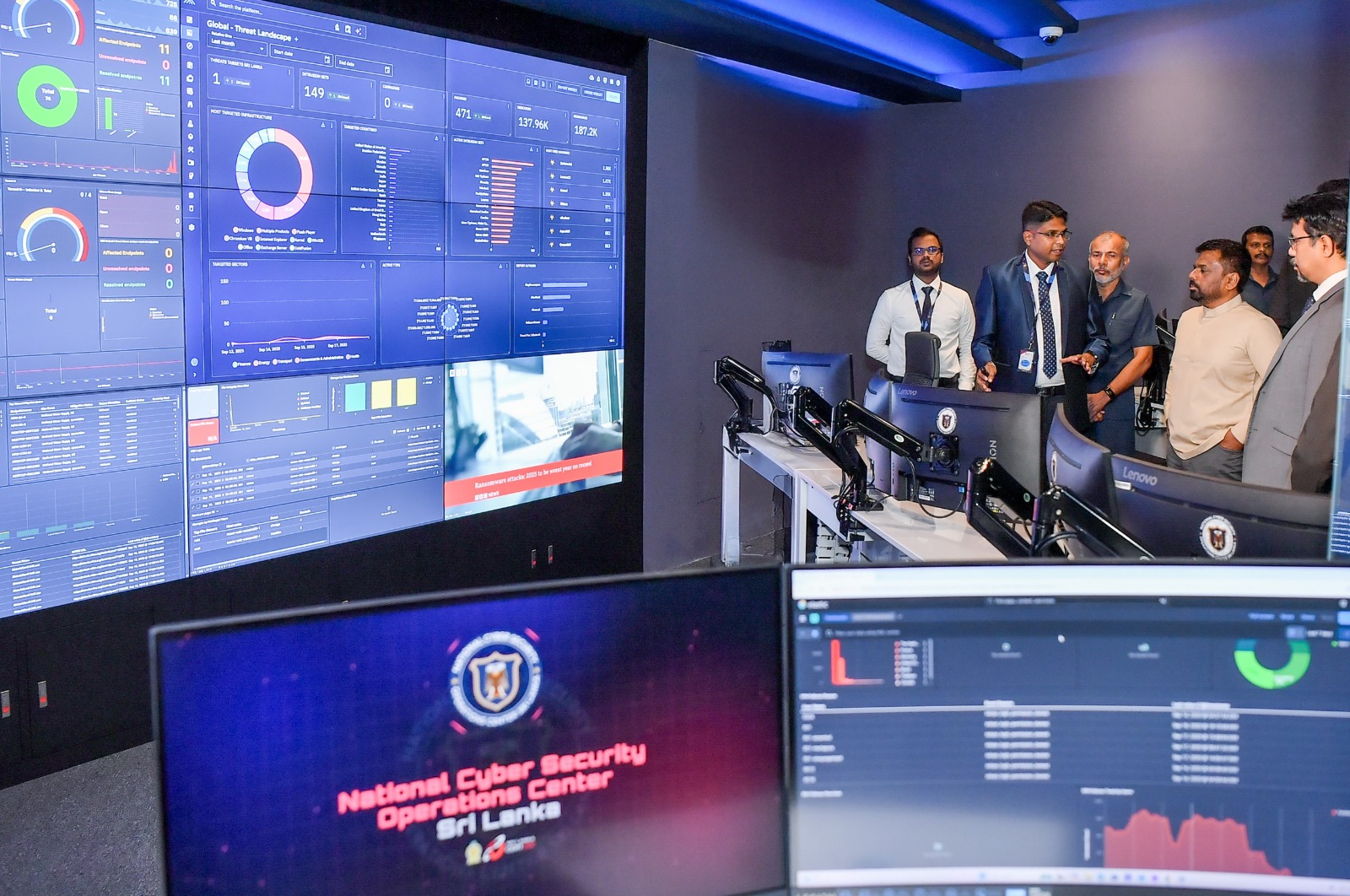 இன்று ஆரம்பிக்கப்பட்ட தேசிய சைபர் பாதுகாப்பு செயற்பாட்டு மத்திய நிலையத்தின் மூலம் குடிவரவு மற்றும் குடியகல்வுத் திணைக்களம், போக்குவரத்துத் திணைக்களம் மற்றும் உள்நாட்டு இறைவரித் திணைக்களம் உள்ளிட்ட முக்கியமான டிஜிட்டல் உட்கட்டமைப்பு வசதிகளை பேணும் 37 நிறுவனங்களை 24 மணிநேரமும் கண்காணித்து, அவற்றுக்கு விடுப்படும் சைபர் அச்சுறுத்தல்களை அடையாளம் காண நடவடிக்கைகள் மேற்கொள்ளப்படும்.