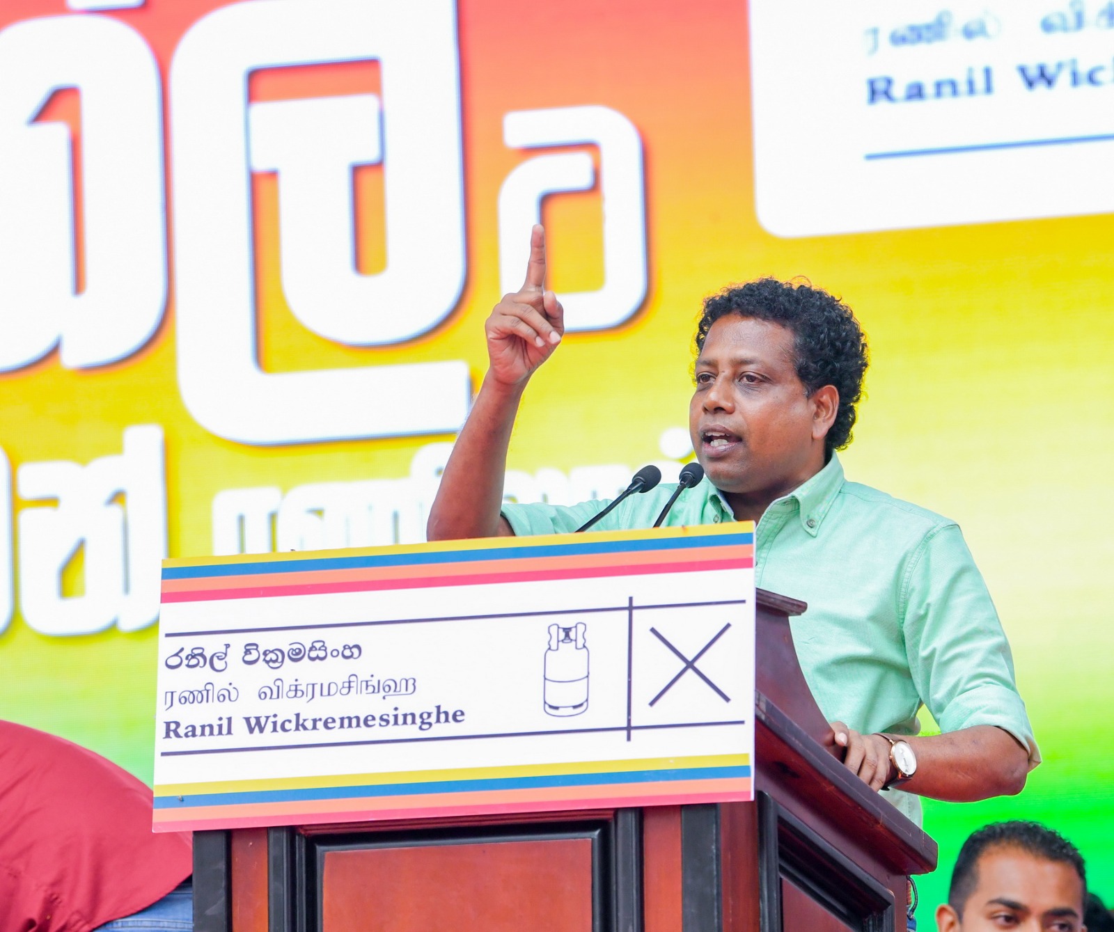 அந்த சோளக் காட்டு பொம்மைகளிடம் இருந்தும் ஓநாய்களிடம் இருந்தும் எமது நாட்டையும் இளைஞர்களின் எதிர்காலத்தையும் பாதுகாக்க வேண்டும். எனவே, நாம் இன்று ஒரு தீர்க்கமான தருணத்தில் இருக்கின்றோம். இந்த தருணத்தில் நாட்டைப் பாதுகாக்கக் கூடிய ஒரே தலைவராக இருக்கும் எமது ஜனாதிபதி ரணில் விக்ரமசிங்கவுக்கு வாக்களித்து அவரை வெற்றி பெறச்செய்வோம்.” – என்றார்.
