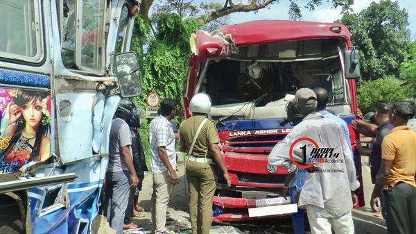 பாடசாலை சேவையில் ஈடுபடும் பஸ்ஸூம் இலங்கை போக்குவரத்து சபைக்கு சொந்தமான பஸ்ஸூம் நேருக்கு நேர் மோதி விபத்திற்குள்ளானதாக பொலிஸார் கூறினர்.
