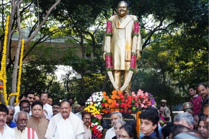 இந்நிலையில் ஹைதராபாத்தில் உள்ள ரவீந்திரபாரதி வளாகத்தில் எஸ்பிபி-யின் சிலையை முன்னாள் குடியரசு துணைத்தலைவர் வெங்கையா நாயுடு , ஹரியானா முன்னாள் ஆளுநர் பண்டாரு தத்தாத்ரேயா ஆகியோர் திறந்து வைத்தனர்.