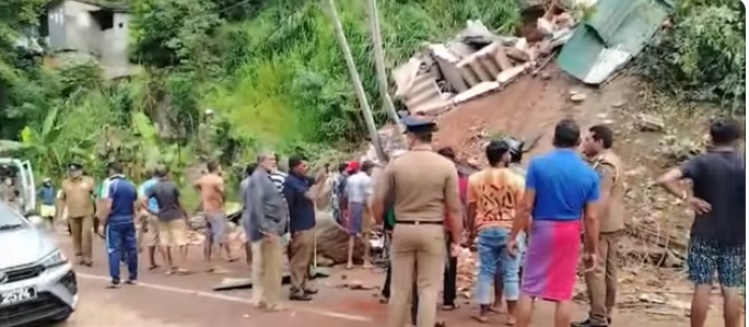 கடும் மழை காரணமாக மண்சரிவு இன்று காலை மண்சரிவு ஏற்பட்டுள்ளது. வீதியோரத்தில் இருந்த வியாபார நிலையமொன்றின்மீது மண்மேடு விழுந்துள்ளது.