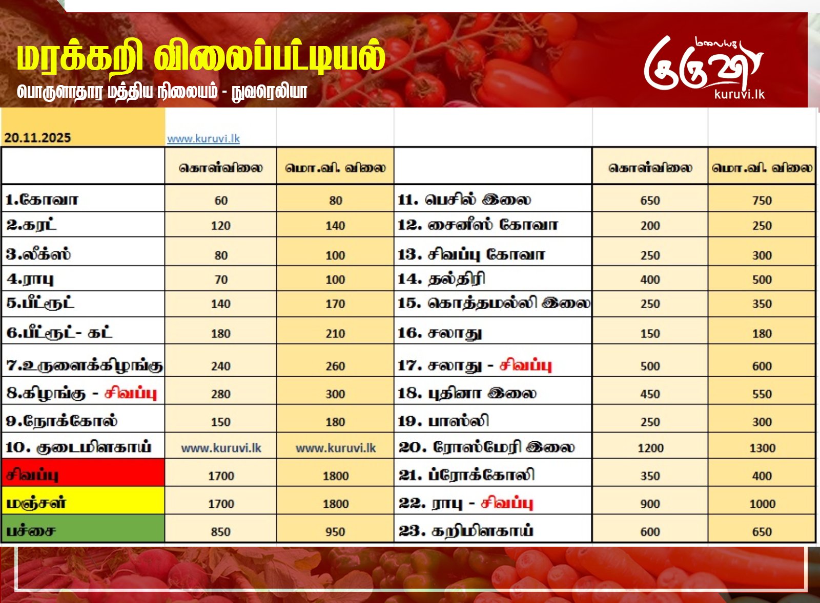 Homeஉள்நாடு உள்நாடுசெய்திவணிகம் மரக்கறி விலைப்பட்டியல் (20.11.2025) November 20, 2025 நுவரெலியா பொருளாதார மத்திய நிலையத்தால் இன்று (20) வெளியிடப்பட்டுள்ள மரக்கறி வகைகளின் (ஒரு கிலோ) விலை பட்டியல்… Share FacebookTwitterPinterestWhatsAppTelegramViber அநுர குமாரவின் கட்சியில் குடும்ப உறுப்பினர்கள் இல்லையா?58:18 தேயிலை தொழிற்சாலைக்குள் அதிரடியாக புகுந்த அமைச்சர் ஜீவன்!02:50 ரூ. 1,700 இல்லையேல் தக்க பாடம் புகட்டுவோம்! தோட்ட தொழிலாளர்கள் கொந்தளிப்பு03:37 வெடுக்குநாறி மலை சிவராத்திரி பூஜையை, இனவாதம் ரீதியில் விமர்சித்த விமல்!04:13 தொல்பொருள் திணைக்கள அதிகாரிகளின் அடாவடி! வவுனியாவில் அட்டகாசம்! வெளுத்து வாங்கிய சாணக்கியன்07:58 மதச் சுதந்திரம் வடக்கிற்கும் தெற்கிற்கும் சமமாக இருக்க வேண்டும்! வெடுக்குநாறி மலைச் சம்பவம்.!07:54 இப்படி ஒரு பண்டிகை இலங்கையில இருக்கா🤭😳😲#news #srilanka #vairalvideo #vairal #malaiyagakuruvi #lka02:55 மலையக மக்கள் இன்னும் ஏமார்ந்து கொண்டிருக்கின்றனர். I தேசிய மக்கள் சக்தியின் தெனியா மாநாடு I NPP11:43 இலங்கை வந்த இளவரசிக்கு ஜனாதிபதி மாளிகையில் வரவேற்பு02:16 நான் மருத்துவராக வேண்டும்! ஊடகங்களிடம் மனம் திறந்த கில்மிசா..03:39 Related Articles Big Story குற்றவாளிகளுக்கு அரசியல் அடைக்கலம் வழங்காத ஆட்சியை உருவாக்கியுள்ளோம் உலகம் 10வது முறையாக பீஹார் முதல்வராக நிதிஷ் பதவியேற்பு; பிரதமர் மோடி பங்கேற்பு உள்நாடு நுகேகொடையில் நாளை கூட்டு அரசியல் சமர்: மலையக கட்சிகள் கை கொடுக்க மறுப்பு! Latest Articles Big Story குற்றவாளிகளுக்கு அரசியல் அடைக்கலம் வழங்காத ஆட்சியை உருவாக்கியுள்ளோம் உலகம் 10வது முறையாக பீஹார் முதல்வராக நிதிஷ் பதவியேற்பு; பிரதமர் மோடி பங்கேற்பு உள்நாடு நுகேகொடையில் நாளை கூட்டு அரசியல் சமர்: மலையக கட்சிகள் கை கொடுக்க மறுப்பு! உள்நாடு இன்றைய (20.11.2025) நாணய மாற்று விகிதம் உலகம் ஜப்பான் கடல் உணவுக்கு சீனாவில் தடை! Load more