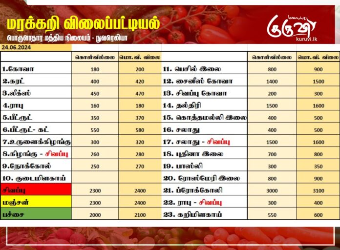 மரக்கறி விலைப்பட்டியல் (24.06.2024)