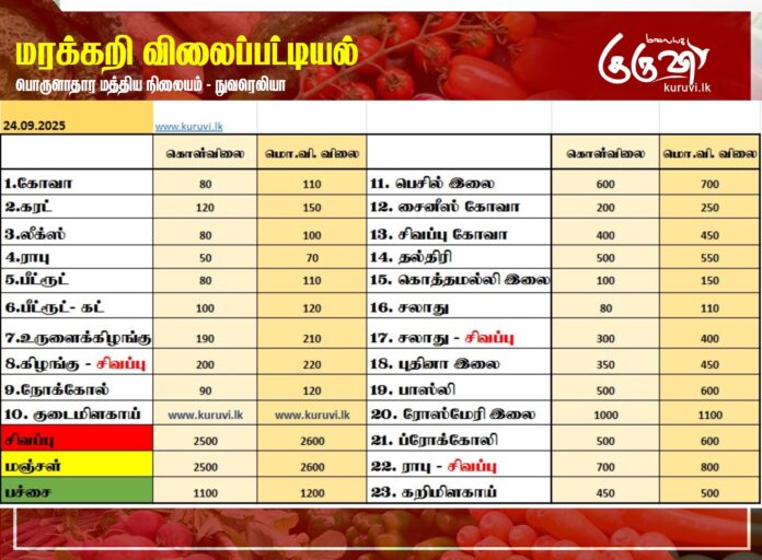 மரக்கறி விலைப்பட்டியல் (24.09.2025)