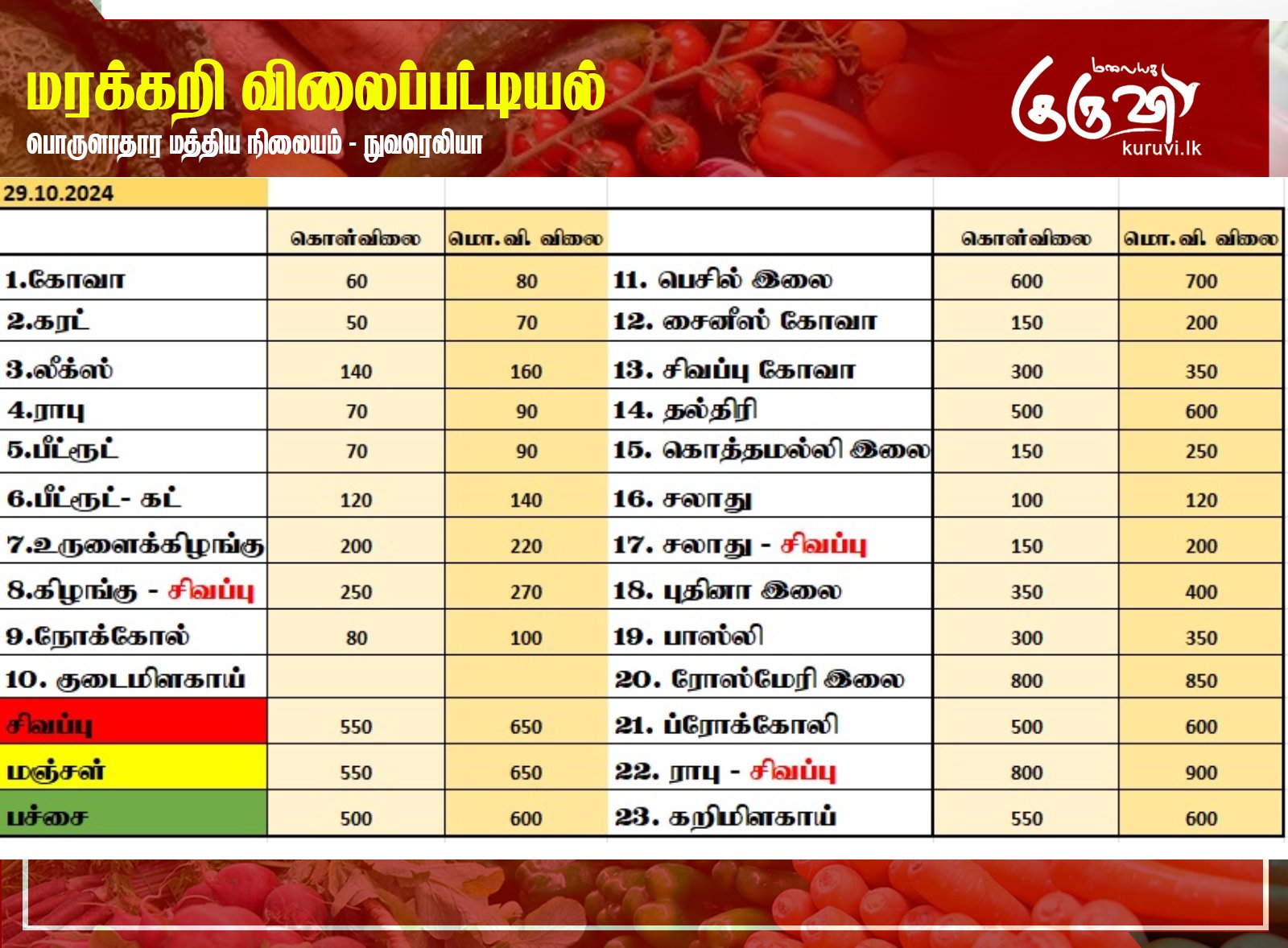 Homeஉள்நாடு உள்நாடுசெய்திவணிகம் மரக்கறி விலைப்பட்டியல் (29.10.2024) October 29, 2024 நுவரெலியா பொருளாதார மத்திய நிலையத்தால் இன்று (29) வெளியிடப்பட்டுள்ள மரக்கறி வகைகளின் (ஒரு கிலோ) விலை பட்டியல்… Share FacebookTwitterPinterestWhatsAppTelegramViber தேயிலை தொழிற்சாலைக்குள் அதிரடியாக புகுந்த அமைச்சர் ஜீவன்!02:50 ரூ. 1,700 இல்லையேல் தக்க பாடம் புகட்டுவோம்! தோட்ட தொழிலாளர்கள் கொந்தளிப்பு03:37 வெடுக்குநாறி மலை சிவராத்திரி பூஜையை, இனவாதம் ரீதியில் விமர்சித்த விமல்!04:13 தொல்பொருள் திணைக்கள அதிகாரிகளின் அடாவடி! வவுனியாவில் அட்டகாசம்! வெளுத்து வாங்கிய சாணக்கியன்07:58 மதச் சுதந்திரம் வடக்கிற்கும் தெற்கிற்கும் சமமாக இருக்க வேண்டும்! வெடுக்குநாறி மலைச் சம்பவம்.!07:54 இப்படி ஒரு பண்டிகை இலங்கையில இருக்கா🤭😳😲#news #srilanka #vairalvideo #vairal #malaiyagakuruvi #lka02:55 மலையக மக்கள் இன்னும் ஏமார்ந்து கொண்டிருக்கின்றனர். I தேசிய மக்கள் சக்தியின் தெனியா மாநாடு I NPP11:43 இலங்கை வந்த இளவரசிக்கு ஜனாதிபதி மாளிகையில் வரவேற்பு02:16 நான் மருத்துவராக வேண்டும்! ஊடகங்களிடம் மனம் திறந்த கில்மிசா..03:39 முத்து சப்பரத்தில் இசைக்குயில்....! மேளதாளத்துடன் கோலாகல வரவேற்பு..!!03:05 Related Articles உள்நாடு யூரி தோட்ட தொழிலாளர்கள் பணி பகிஷ்கரிப்பு: பொதுமக்கள் ஆதரவு உள்நாடு பிரிட்டனில் உரைகள் ரத்து: நாமல் கவலை! உலகம் போதைப்பொருள் கடத்தல் மன்னன் கொலை: மெக்சிகோவில் வன்முறை வெடிப்பு! Latest Articles உள்நாடு யூரி தோட்ட தொழிலாளர்கள் பணி பகிஷ்கரிப்பு: பொதுமக்கள் ஆதரவு உள்நாடு பிரிட்டனில் உரைகள் ரத்து: நாமல் கவலை! உலகம் போதைப்பொருள் கடத்தல் மன்னன் கொலை: மெக்சிகோவில் வன்முறை வெடிப்பு! உள்நாடு மலையக கல்வி அபிவிருத்தி மன்றத்தின் மூன்று செயல் திட்டங்கள் பதுளையில் முன்னெடுப்பு! உள்நாடு நாமலின் ஒக்ஸ்போர்ட் யூனியன் உரையும் ரத்து! Load more
