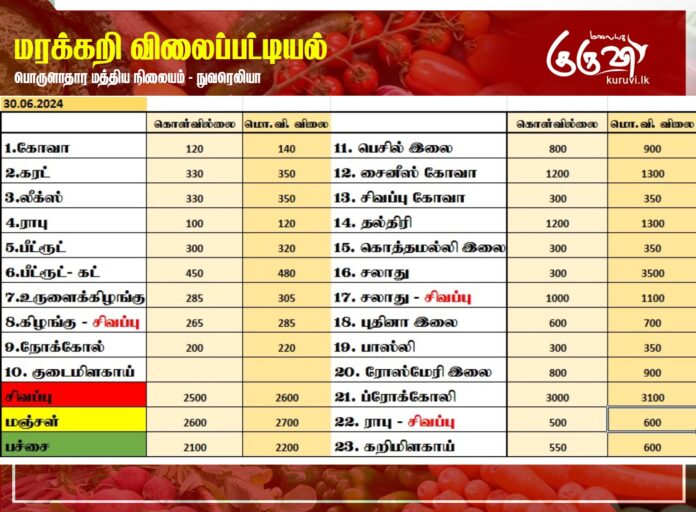 மரக்கறி விலைப்பட்டியல் (30.06.2024)