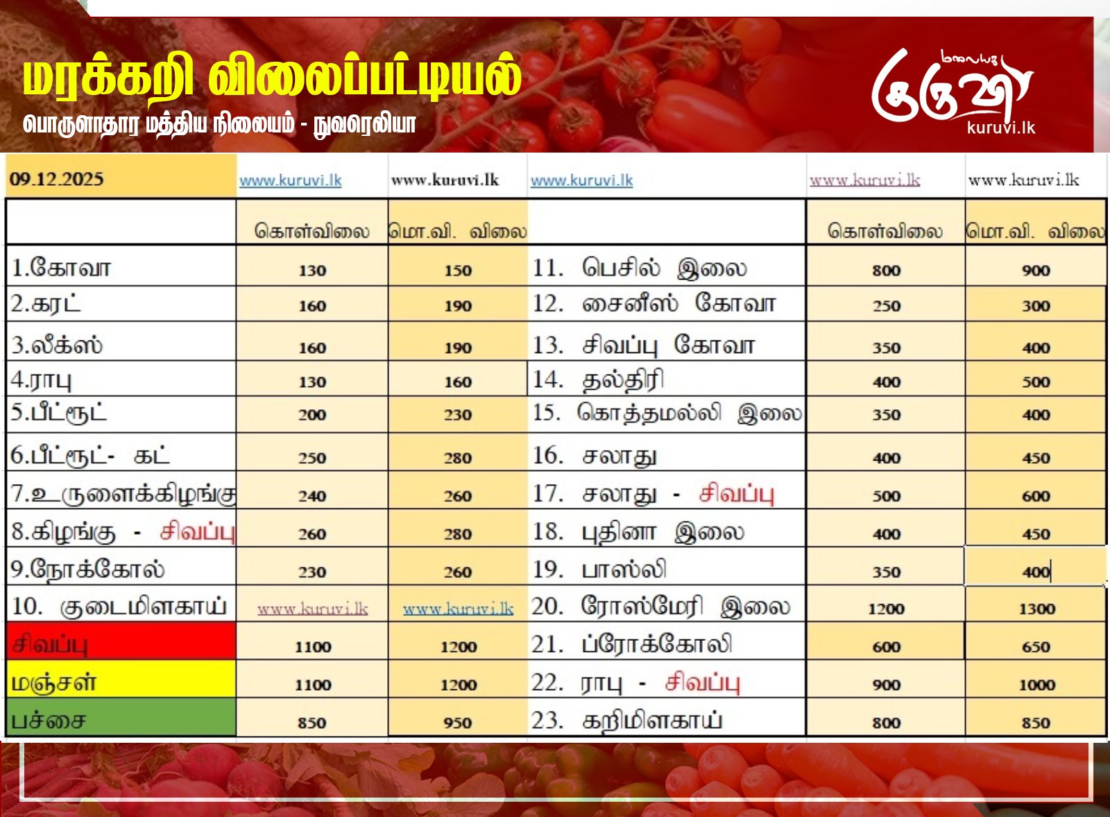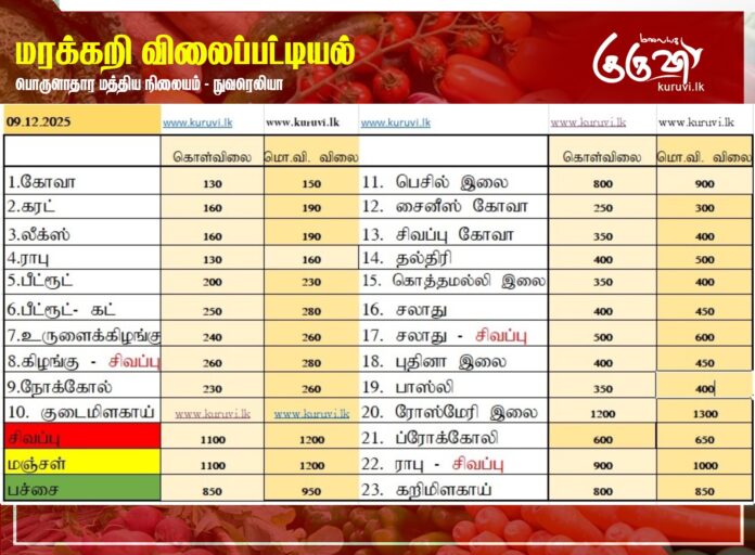மரக்கறி விலைப்பட்டியல் (9.12.2025)