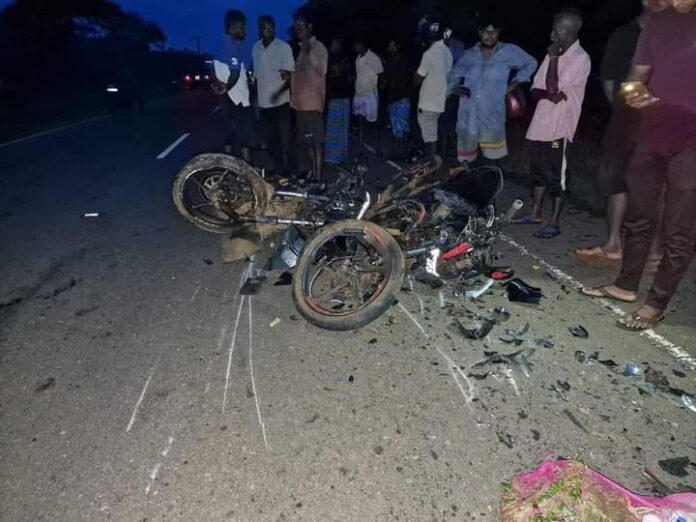முல்லைத்தீவு, மல்லாவி – வன்னிவிளாங்குளம் பகுதியில் நேற்று புதன்கிழமை மாலை இடம்பெற்ற விபத்தில் 2 இளைஞர்கள் உயிரிழந்துள்ளதுடன் மற்றுமொருவர் படுகாயமடைந்துள்ளார்.