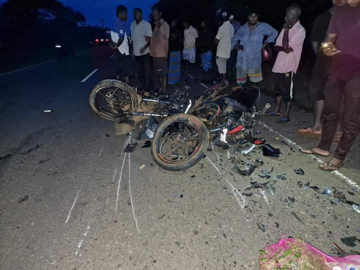 மாங்குளத்திலிருந்து மல்லாவி நோக்கி வந்த மோட்டார் சைக்கிளும் மல்லாவி பகுதியிலிருந்து மாங்குளம் நோக்கிச் சென்று கொண்டிருந்த மோட்டார் சைக்கிளும் நேருக்கு நேர் மோதிக்கொண்டதாலேயே இந்த விபத்து சம்பவித்துள்ளது.
