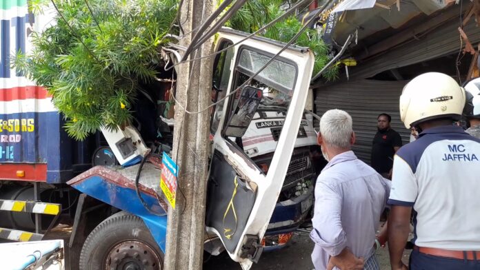 யாழ்ப்பாணம் – நல்லூர் கந்தசுவாமி கோயிலுக்கு முன்பாக வேகக் கட்டுப்பாட்டை இழந்த லொறி கடை கட்டித்துடன் மோதி விபத்துக்குள்ளானது.