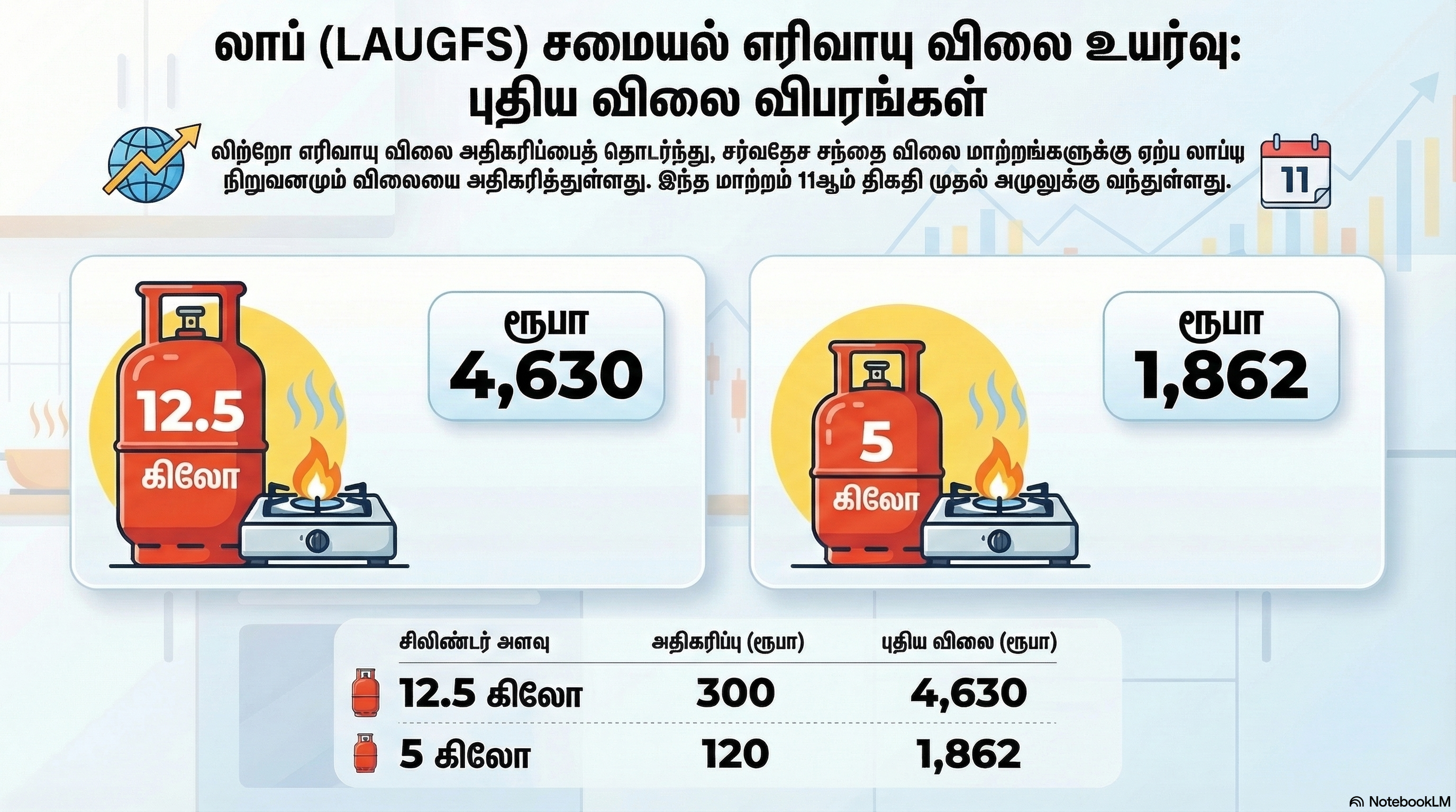 LAUGFS Gas ‘லாப்’ சமையல் எரிவாயுவின் விலையும் அதிகரிக்கப்பட்டுள்ளது.