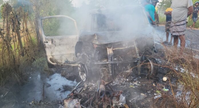 இதனை அடுத்து இரு வாகனங்களும் தீப்பற்றி எரிந்த நிலையில் அங்கு குழுமிய மக்களினால் தீயை கட்டுப்படுத்த முயற்சிகள் மேற்கொண்ட போதிலும் அது சாத்தியப்படவில்லை.