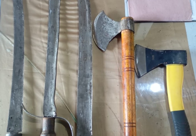 வாள்கள் மற்றும் கைக்கோடாரிகள் என்பன பொலிஸாரால் கைப்பற்றப்பட்டுள்ளது.