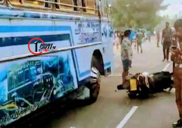 தனியார் பஸ்ஸொன்றும், மோட்டார் சைக்கிளும் மோதுண்டதில் இவ்விபத்து இடம்பெற்றுள்ளது.