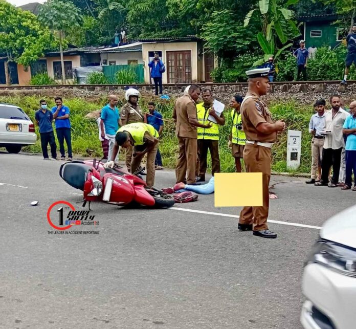 தந்தையும் மகளும் பயணித்த மோட்டார் சைக்கிள், தனியார் பஸ்சுடன் மோதியதில் மோட்டார் சைக்கிளின் பின் இருக்கையில் பயணித்த யுவதி கீழே விழுந்துள்ளார்.