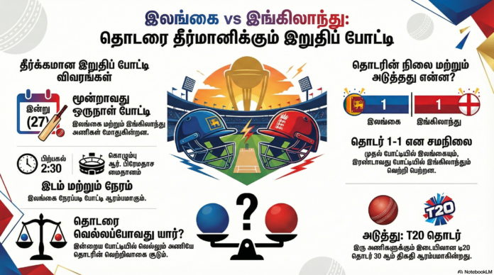 இலங்கை மற்றும் இங்கிலாந்து அணிகளுக்கிடையிலான மூன்றாவது ஒருநாள் ODI போட்டி இன்று (27) நடைபெறுகின்றது.