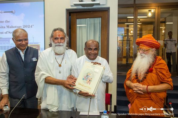 ஸ்ரீமத் பகவத் கீதையின் பிரதி இலங்கை பாராளுமன்றத்தின் சபாநாயகர் மஹிந்த யாப்பா அபேவர்தனவுக்கு நேற்று (04) பாராளுமன்றத்தில் கையளிக்கப்பட்டது.