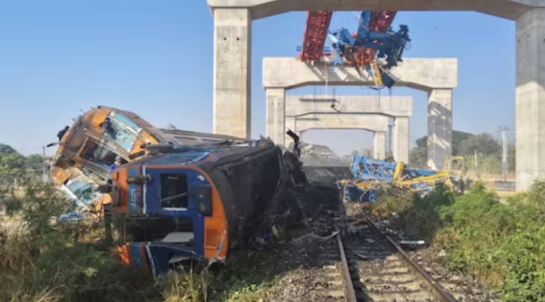 இதற்கு பயன்படுத்தப்பட்ட கிரேன் ஒன்று திடீரென சரிந்து ரயில் ஒரு பெட்டியின் மீது விழுந்துள்ளது. இதில் ரயில் தடம் புரண்டது. இந்த விபத்தில் சிக்கி பயணிகள் 22 பேர் உயிரிழந்தனர். 80 பேர் படுகாயமடைந்தனர்.