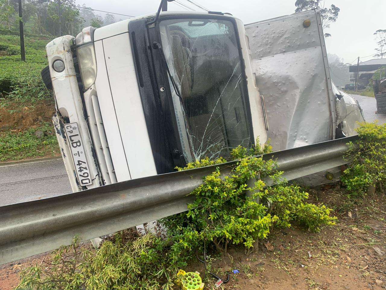 நுவரெலியாவில் தொடர்ந்து நிலவும் சீரற்ற வானிலையால் சாரதியின் கட்டுப்பாட்டைமீறி வாகனம் விபத்துக்குள்ளாகியிருக்கலாம் என சந்தேகிக்கப்படுகின்றது. குறித்த லொறியில் சாரதியும், உதவியாளரும் பயணித்தனர் என்றும், எனினும் சிறு காயங்களுடன் பாதுகாப்பாக உயிர் தப்பியுள்ளனர் எனவும் பொலிஸார் தெரிவித்தனர்.