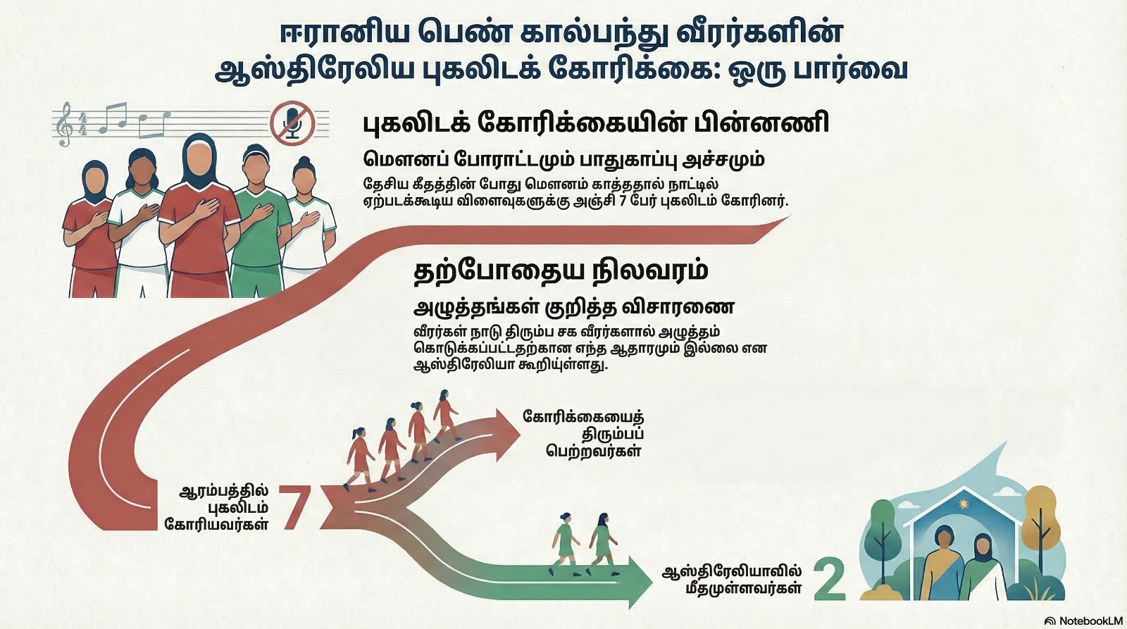 முன்னதாக, தேசிய கீதம் இசைக்கப்பட்ட போது மௌனம் காத்ததால் ஏற்படக்கூடிய அச்சுறுத்தல்களுக்கு அஞ்சி ஏழு வீராங்கனைகள் ஆஸ்திரேலியாவில் பாதுகாப்பு கோரினர்.