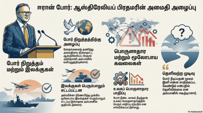 ஈரான் மீதான போரில் அமெரிக்காவின் முக்கிய இலக்குகள் பெரும்பாலும் எட்டப்பட்டுவிட்டதாக டிரம்ப் கூறியுள்ள நிலையில், ஆஸ்திரேலியப் பிரதமர் அந்தோனி அல்பானிஸ் தற்போதைய பதற்றத்தைத் தணிக்கக் கோரியுள்ளார்.