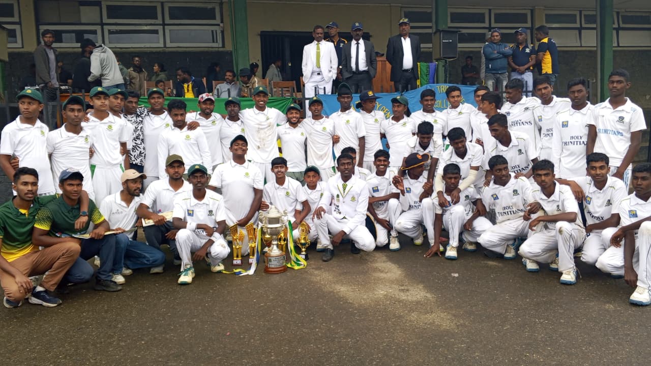 இதன்போது பரிசுத்த திரித்துவ மத்திய கல்லூரி அணி அனைத்து விக்கெட்டுகளையும் இழந்து 140 ஓட்டங்கள் பெற்றது. ரிஷாந்தன் 54 ஓட்டங்களுடன் அதிகபட்ச ஸ்கோர் செய்தார்.
