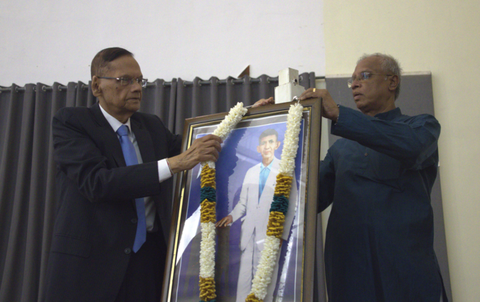 இதனைத் தொடர்ந்து காலை 10 மணியளவில் தந்தை செல்வா கலையரங்கில் நினைவுப் பேருரை நிகழ்வு ஆரம்பமானது. தந்தை செல்வாவின் உருவப்படத்துக்கு முன்னாள் வெளிவிவகார அமைச்சர் பேராசிரியர் ஜி.எல். பீரிஸ் மலர் மாலை அணிவித்து அஞ்சலி செலுத்தினார்.