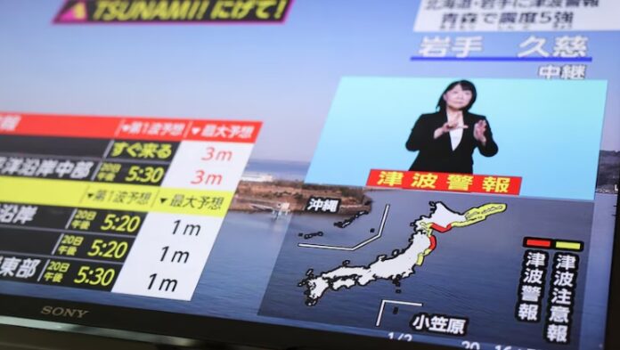 இதனால் கரையோர மாவட்டங்களுக்கு ஜப்பான் வானிலை ஆய்வு மையம் சுனாமி எச்சரிக்கையை விடுத்துள்ளது.
