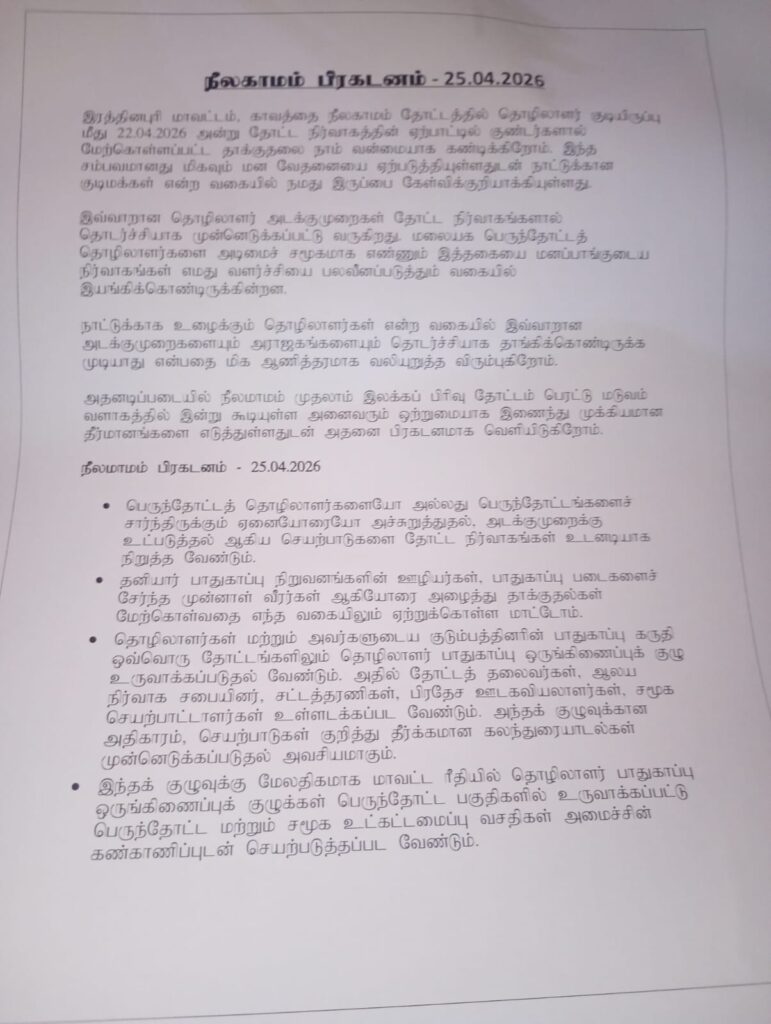 இந்நிலையில் சமூக செயற்பாட்டு இளைஞர் குழுவின் ஏற்பாட்டில் நீலகாமம் தோட்டத்தில் இன்று விசேட கலந்துரையாடலொன்று இடம்பெற்றது.
