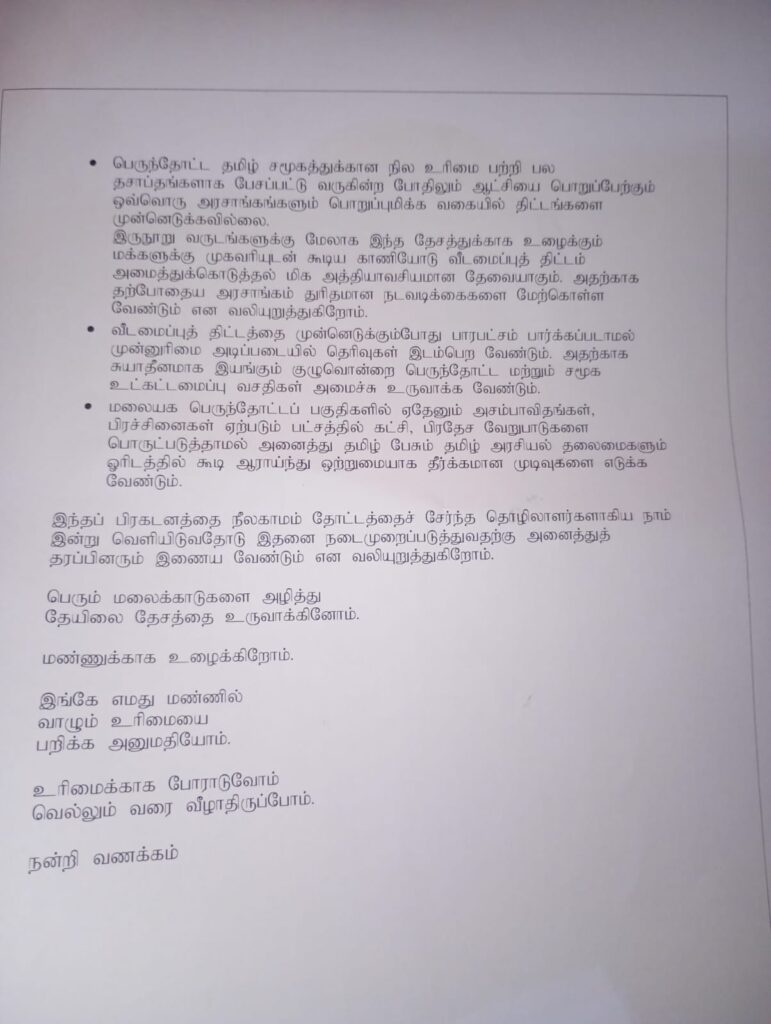 சுயாதீன ஊடகவியலாளரும், சமூக செயற்பாட்டாளருமான நிர்ஷன் ராமானுஜம் பிரகடனத்தை வாசித்தார். ஊடகவியலாளர், மனித உரிமை செயற்பாட்டாளர் ரஞ்சன் அருன்பிரசாந்த் உள்ளிட்ட குழுவினர் இப்பிரச்சினையை தேசிய மயப்படுத்துவதில் முன்னின்று செயல்பட்டனர்.